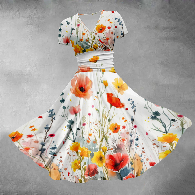 Dashingsoul Vacation Bohemia Flower Print V-neck Midi Dress
