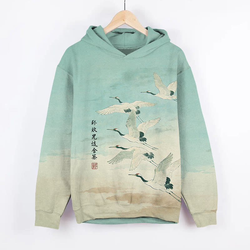 Vintage Watercolor White Cranes Art Print Long Sleeve Hoodie