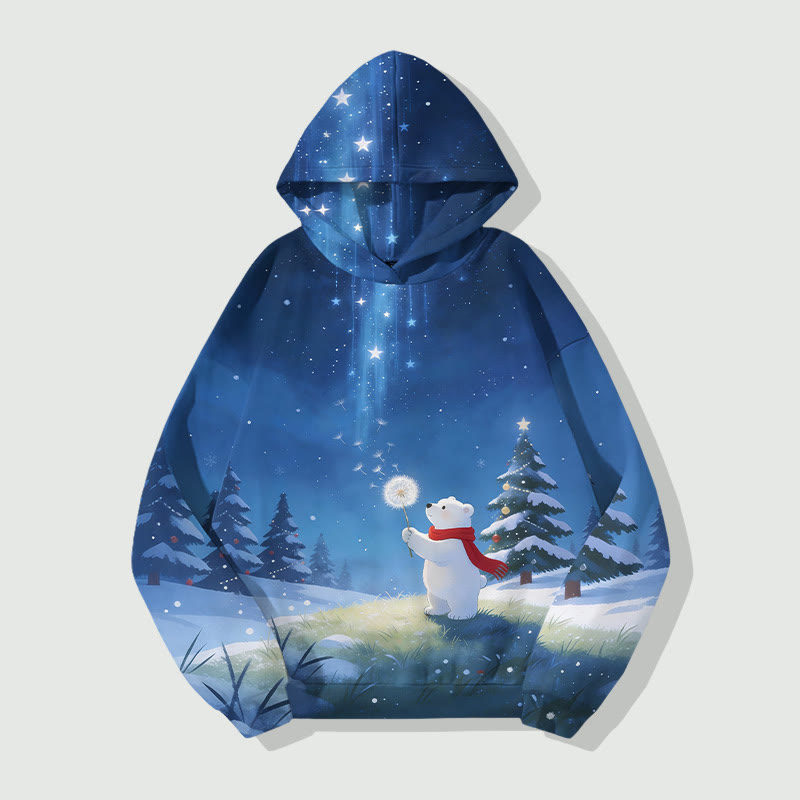 Christmas Polar Bear Holding Dandelion Art Print Long Sleeve Hoodie
