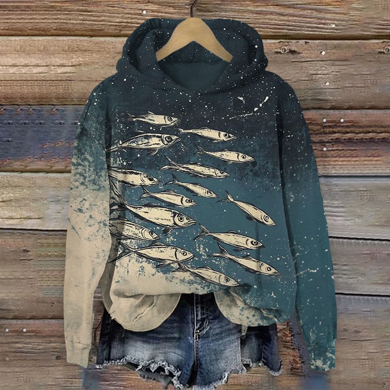 Ocean Fish School Art Print Long Sleeve Hoodie