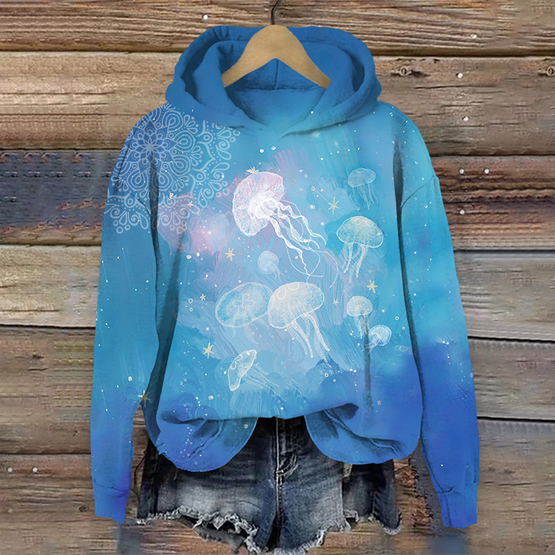 Creative Glowing Jellyfish Art Print Long Sleeve Hoodie