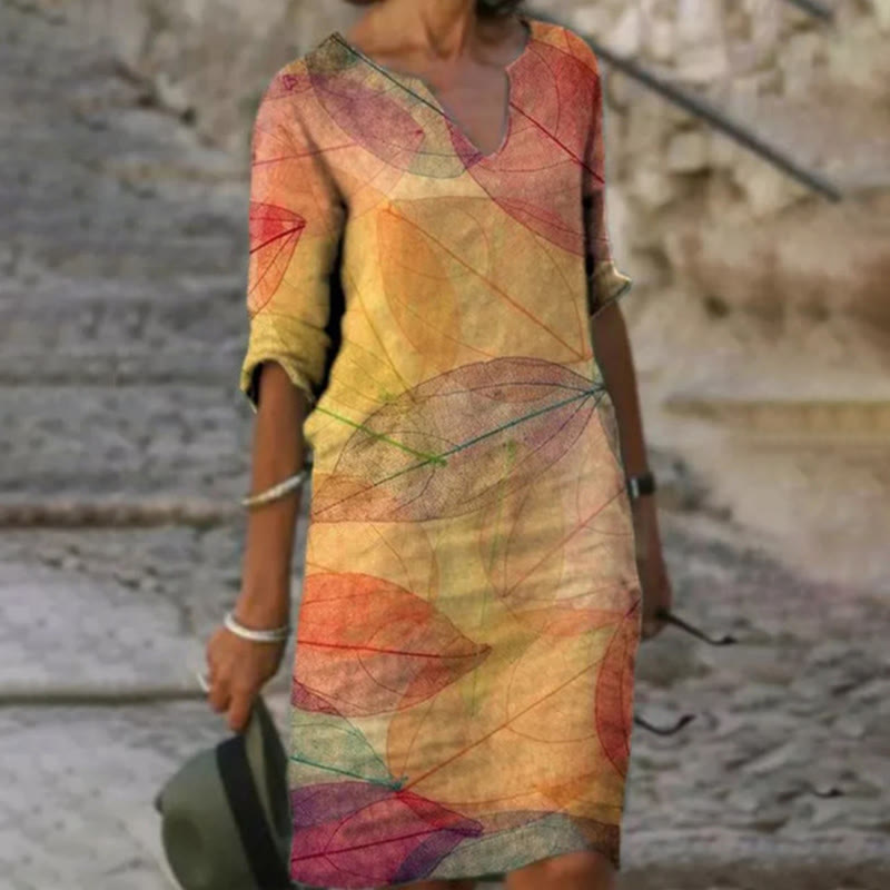 Dashingsoul Women's Leaf Print Fashion Loose V Neck Dress