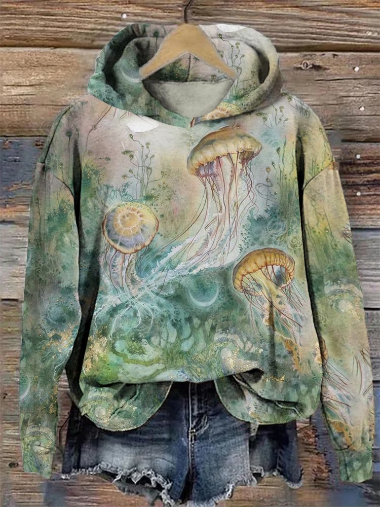 Jellyfish Underwater Creative Print Casual Long Sleeve Hoodie