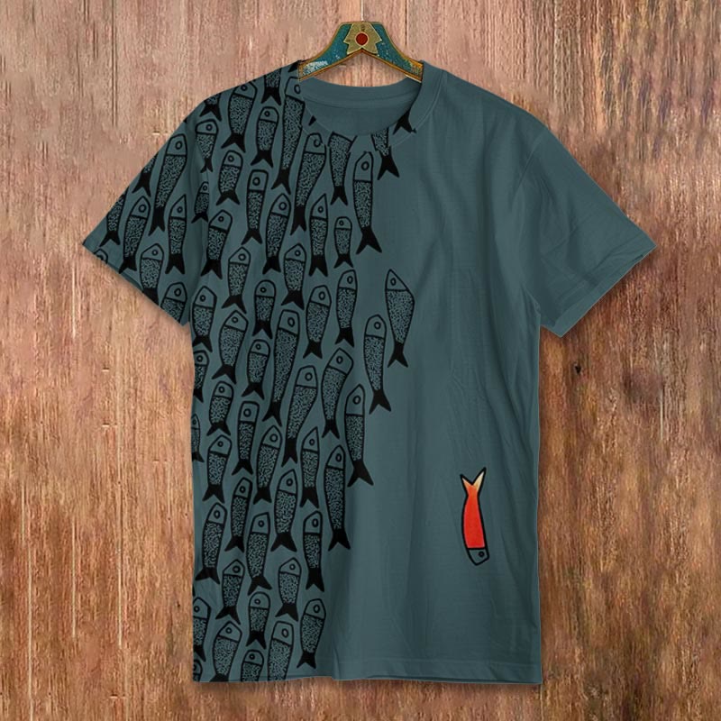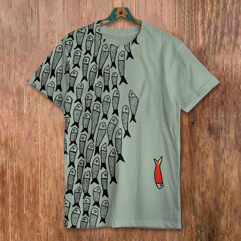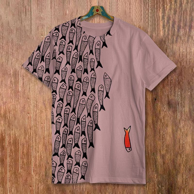 Dashingsoul Simple Lines Abstract Geometric Fish Art Print Short-sleeved Men's Casual T-shirt