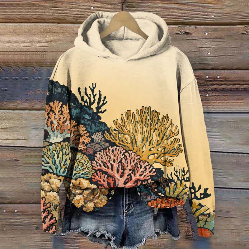 Vintage Ocean Watercolor Coral Art Print Long Sleeve Hoodie