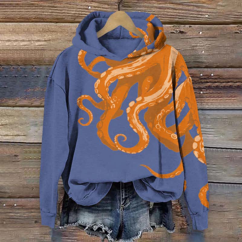 Ocean Octopus Print Long Sleeve Hoodie