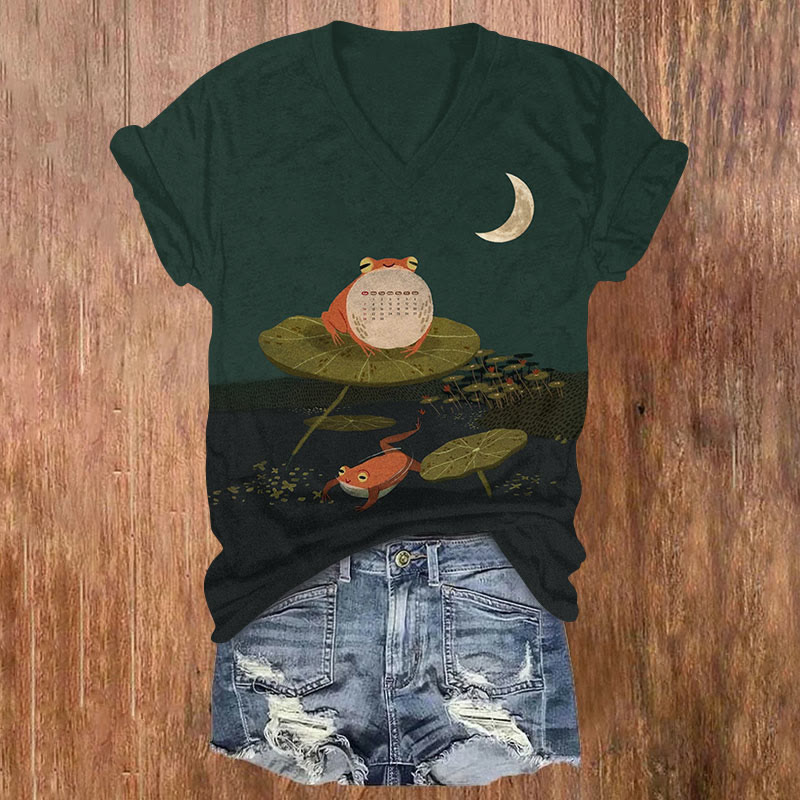 Funny Frogs print v-neck T-Shirt