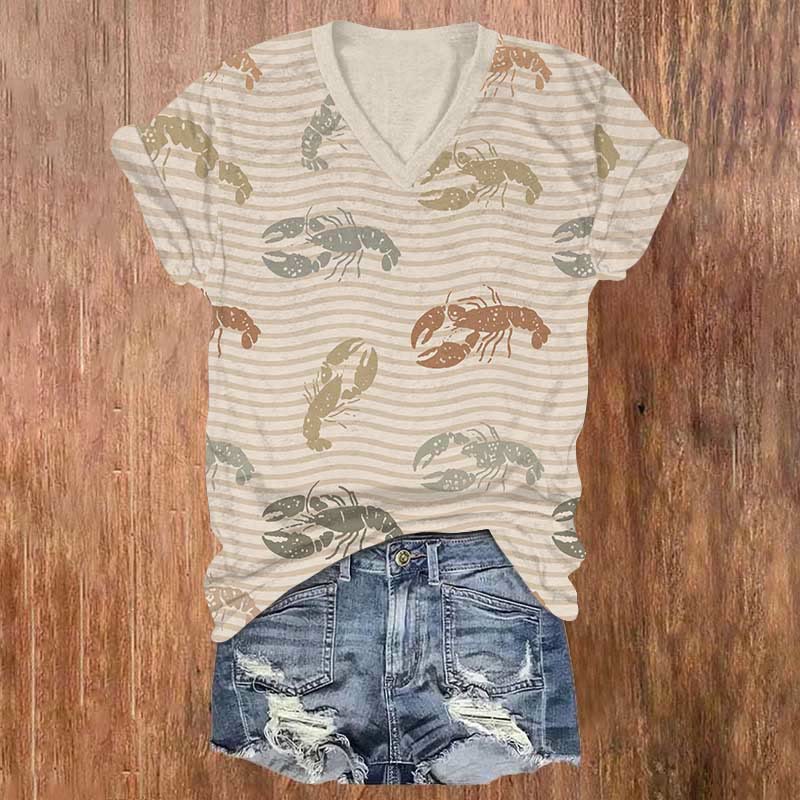 Vintage Colored Lobster Art Print V-neck T-shirt