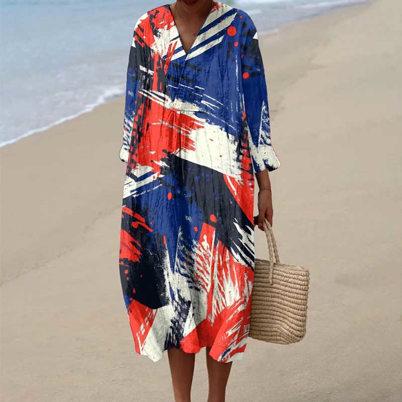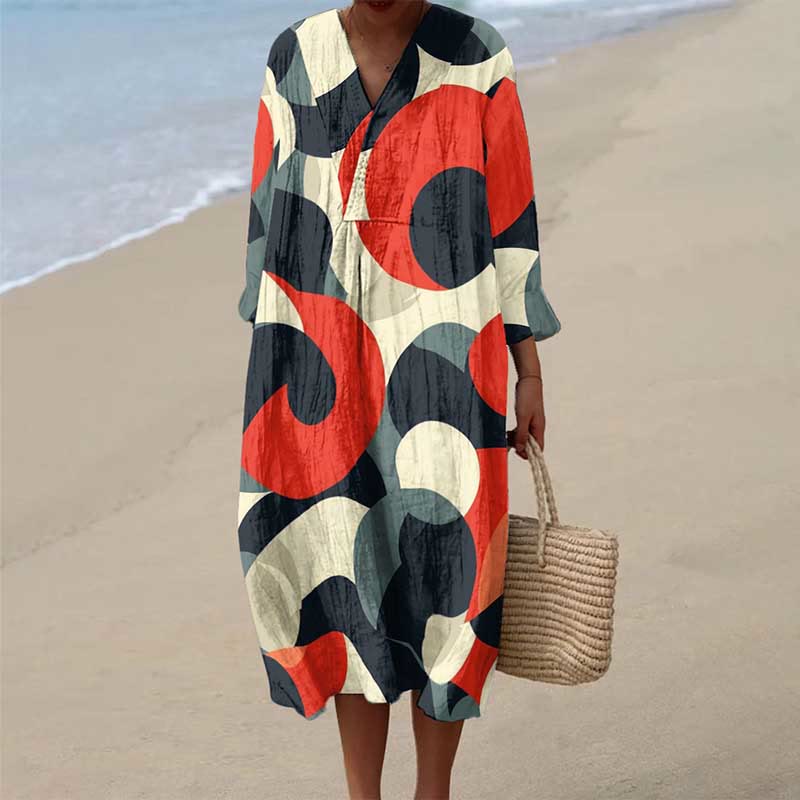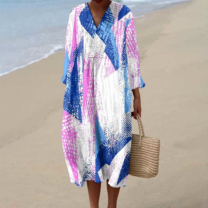 Women's Vintage Irregular Blurred Geometric Pattern Art Print Dress
