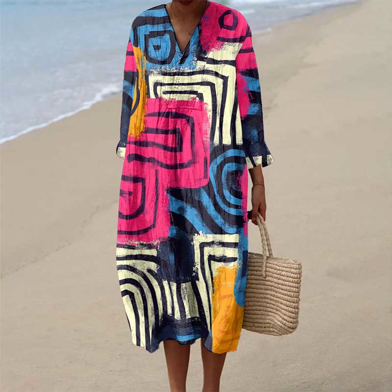 Women's Vintage Hand-drawn Irregular Geometric Pattern Art Print Dress