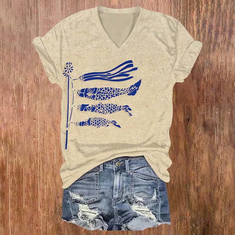 Japanese Creative Fish Streamer Flag Art Print T-shirt