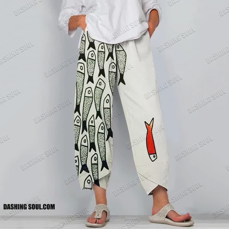 Retro Fun Sardinas Fish Art Cropped Casual Pants