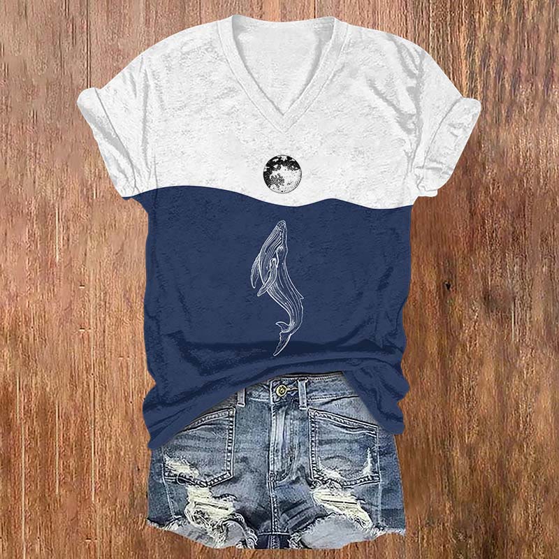 Ocean Moonlight Dream Whale Art Print T-shirt
