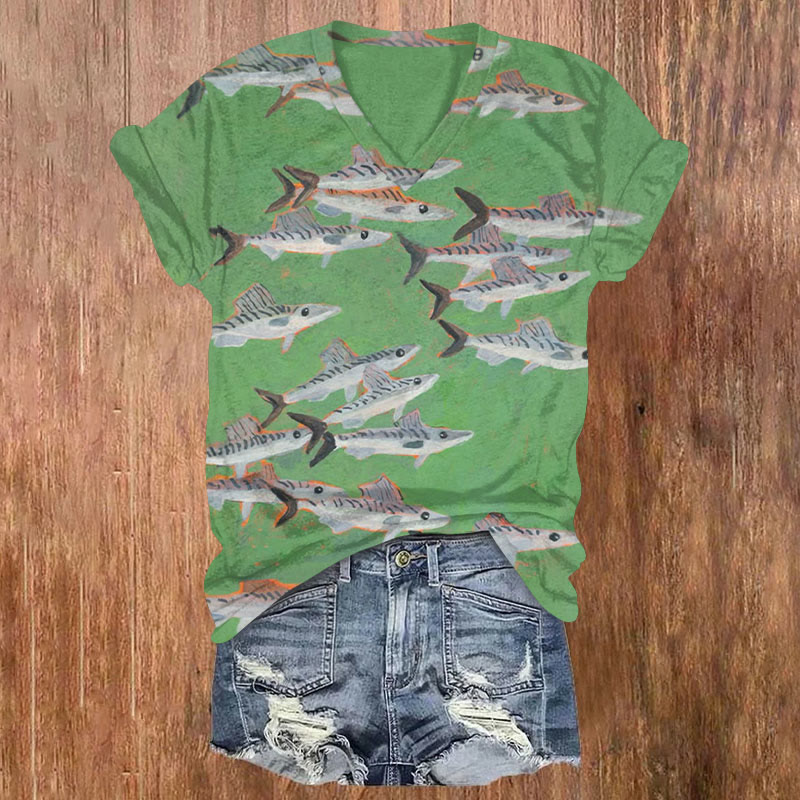 Retro Simple Colorful Fish Print T-shirt