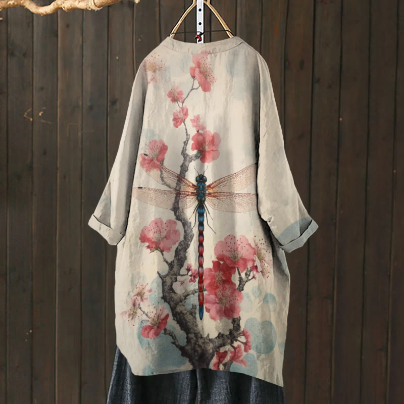 Retro Plum Blossom Dragonfly Japanese Art Print Cardigan