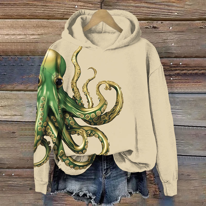 St. Patrick's Day Retro Octopus Art Print Long Sleeve Hoodie