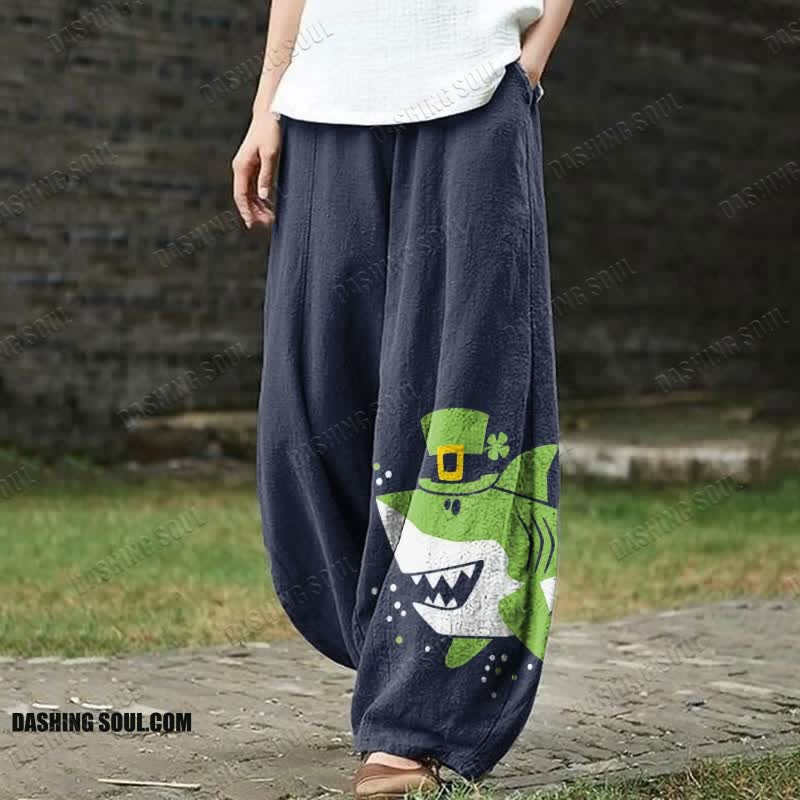 St. Patrick's Day Simple Shark Art Print Casual Pants