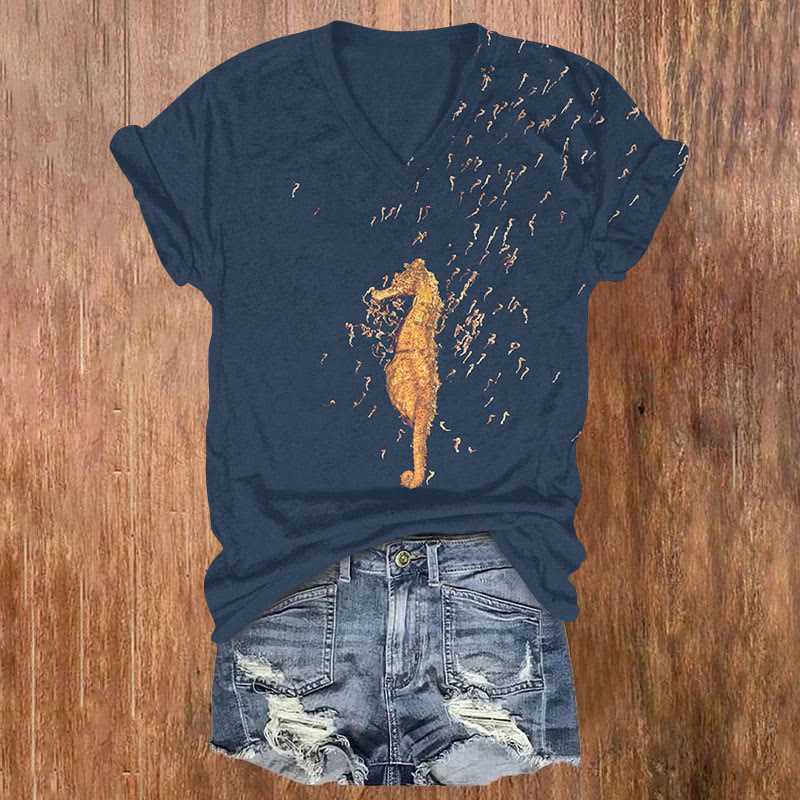 Ocean Treasures Watercolor Seahorse Art Print T-shirt