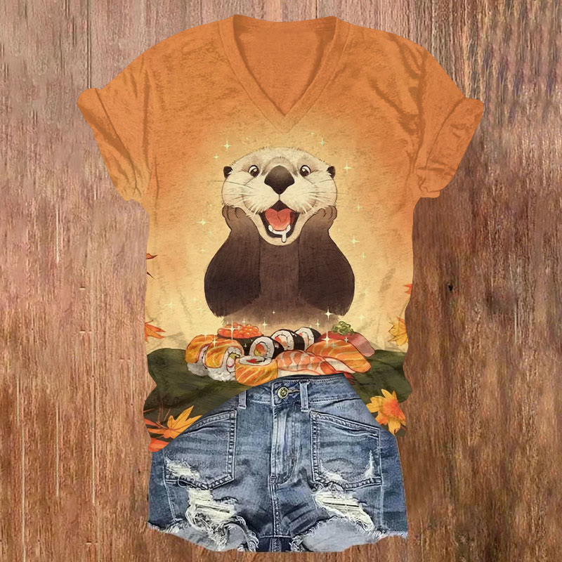 Japanese Otter Sushi Print T-shirt
