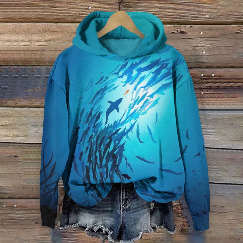 Creative Shark And Fish School Print Long Sleeve Hoodie