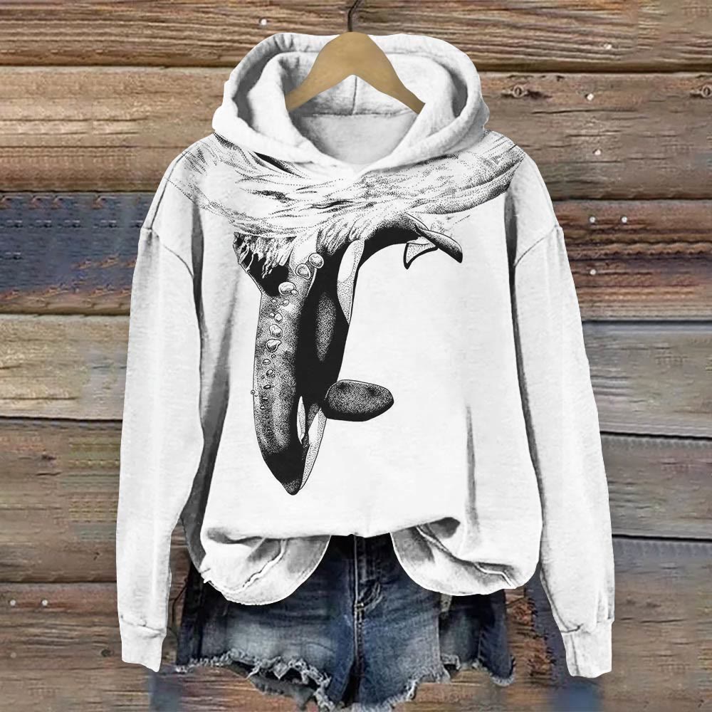 Leaping Killer Whale Print Long Sleeve Hoodie