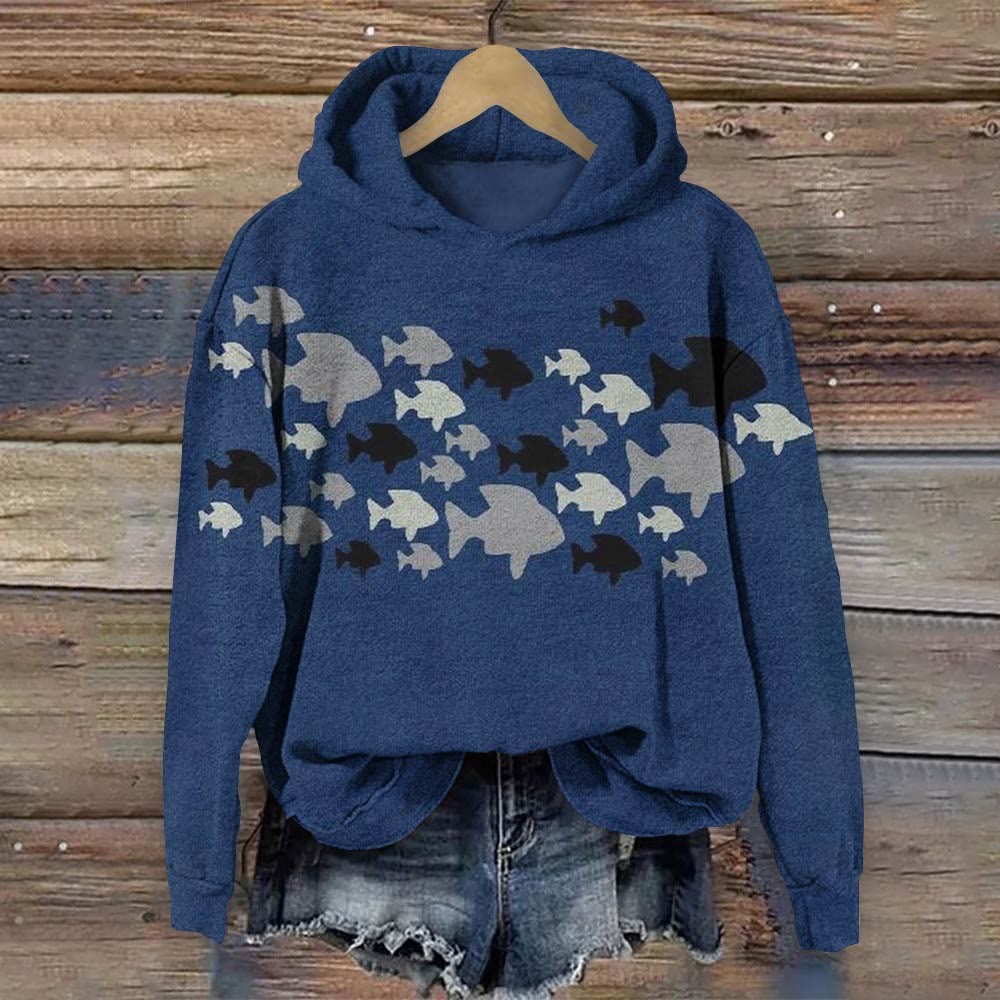 Vintage Simple Fish Print Long Sleeve Hoodie