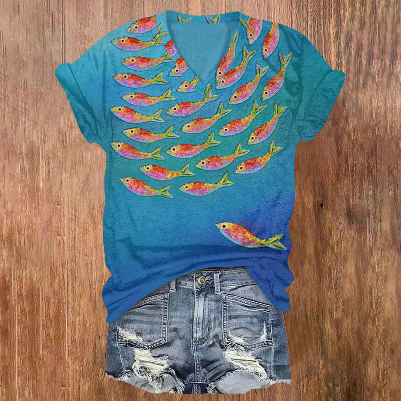 Oil Painting Of Fish Underwater Print Long Sleeve Hoodie