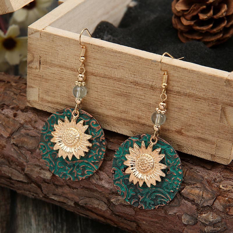 Retro Bohemian Colorblock Double-layer Sunflower Pattern Earrings