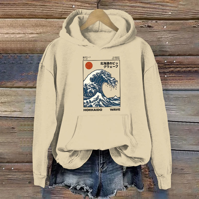 Cotton Hokkaido Wave Japanese Design Print Women's Hoodie
