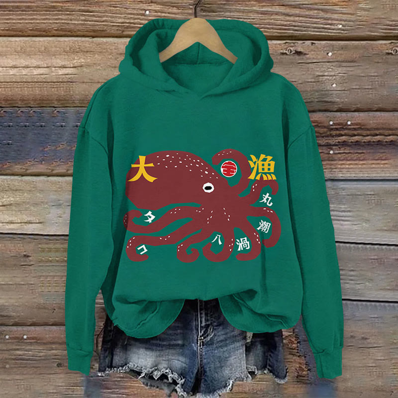 Japanese Octopus Art Vintage Print Long Sleeve Hoodie