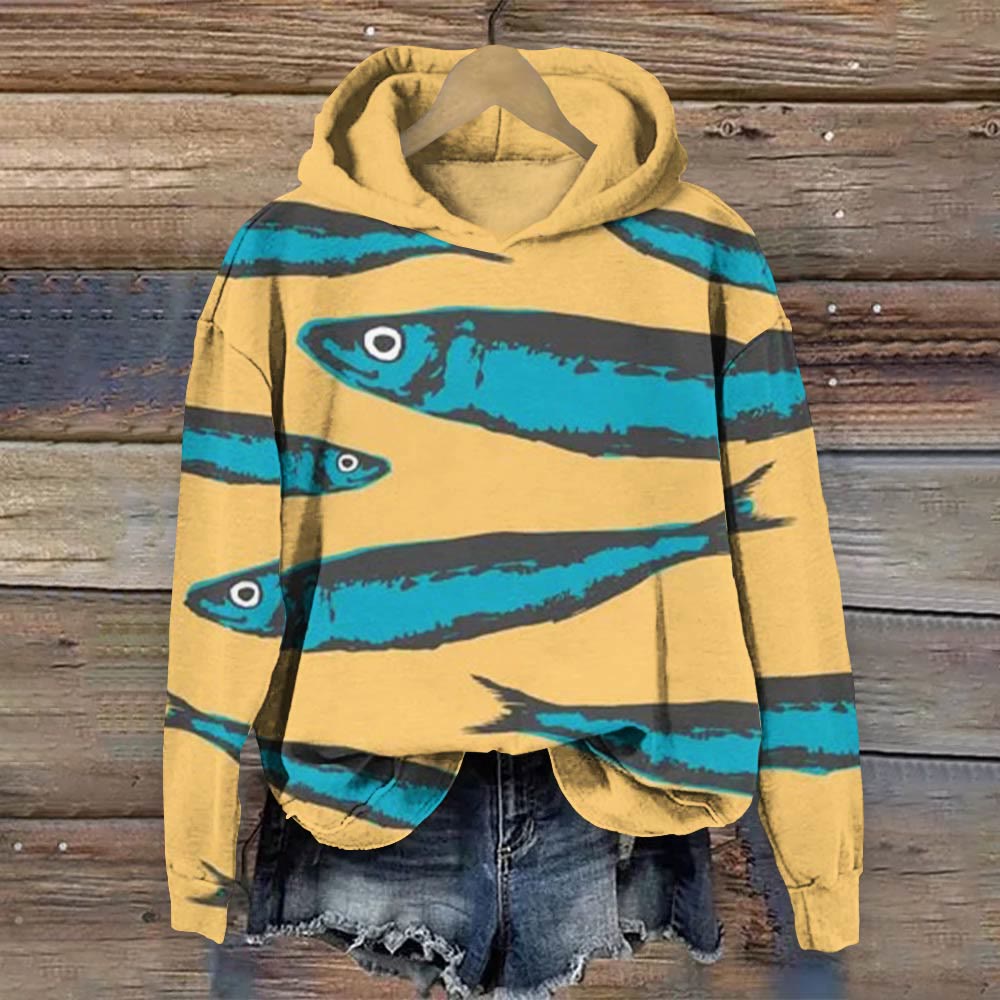 Fresh Sardines Art Vintage Print Long Sleeve Hoodie