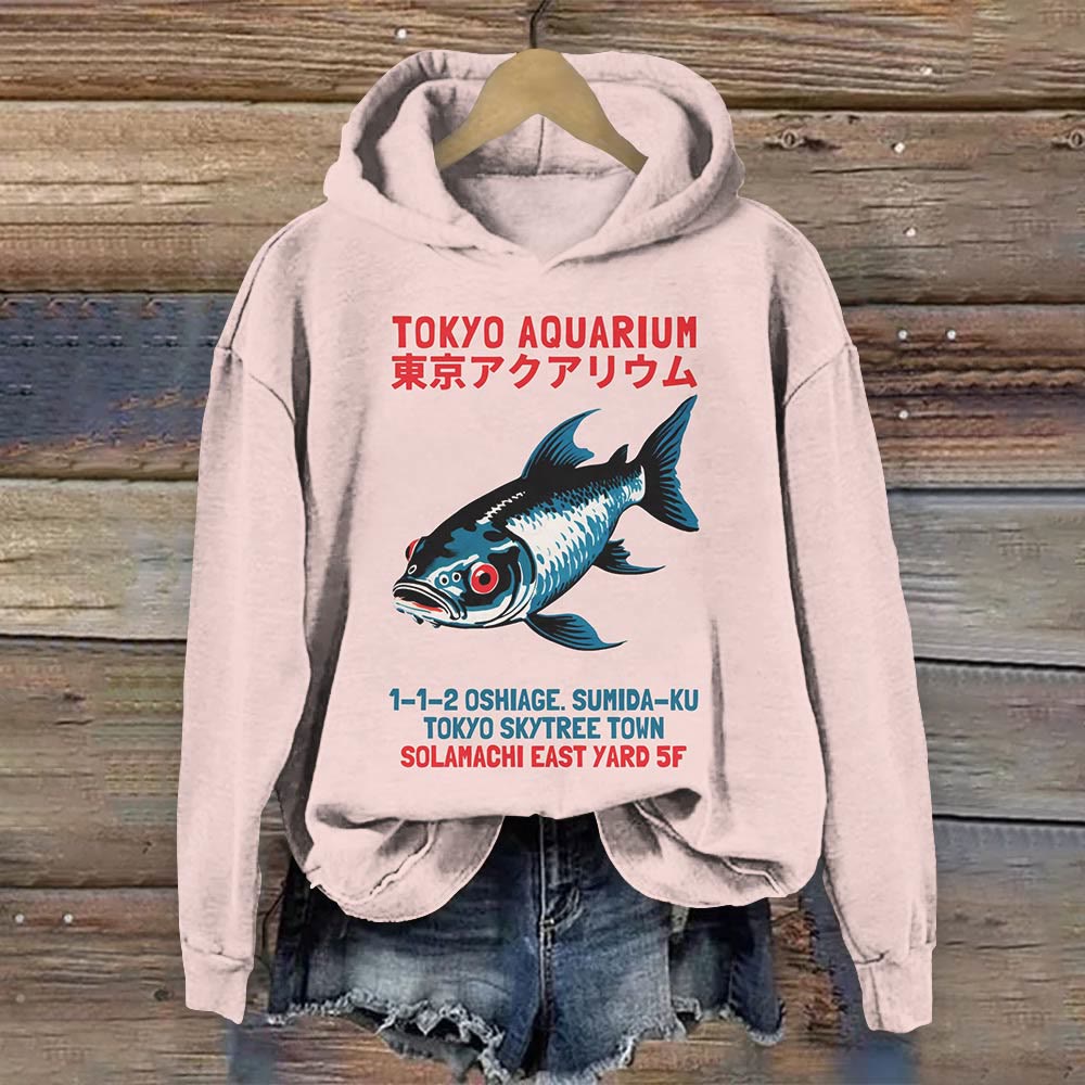 Japanese Vintage Tokyo Aquarium Art Print Long Sleeve Hoodie