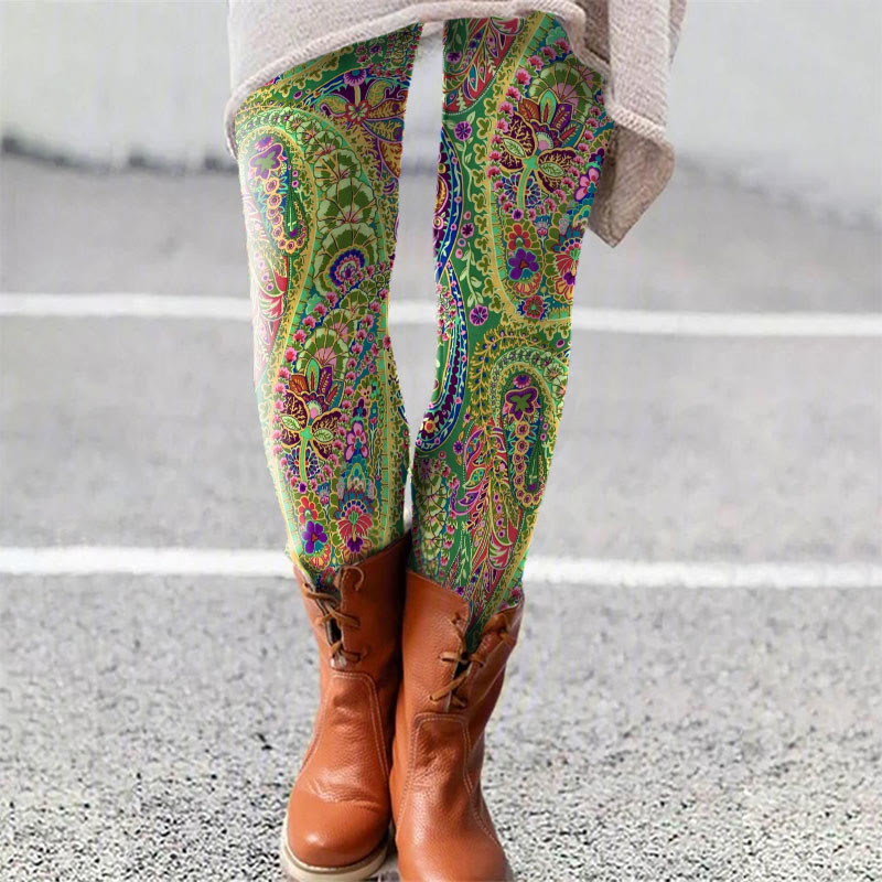 Vintage Ethnic Colorful Paisley Art Print Print Leggings