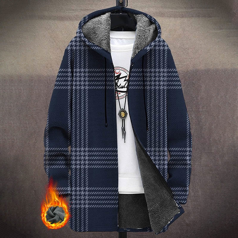 Men's Vintage Colorful Navy Blue Houndstooth Check Print Unisex Plush Thick Long-sleeved Fleece Jacket Coat