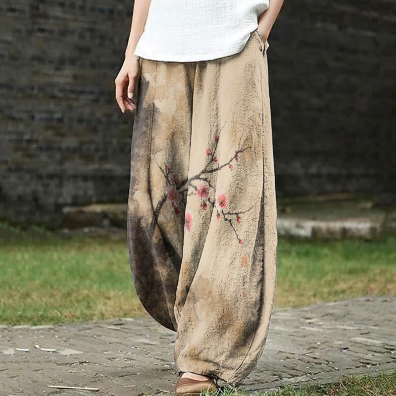 Women's Vintage Sakura Blossom Art Print Casual Pants
