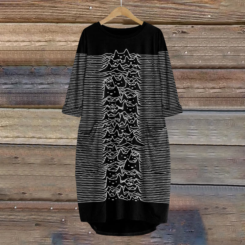Dashingsoul Abstract Creative Cute Cat Print Crew Neck Casual Dress