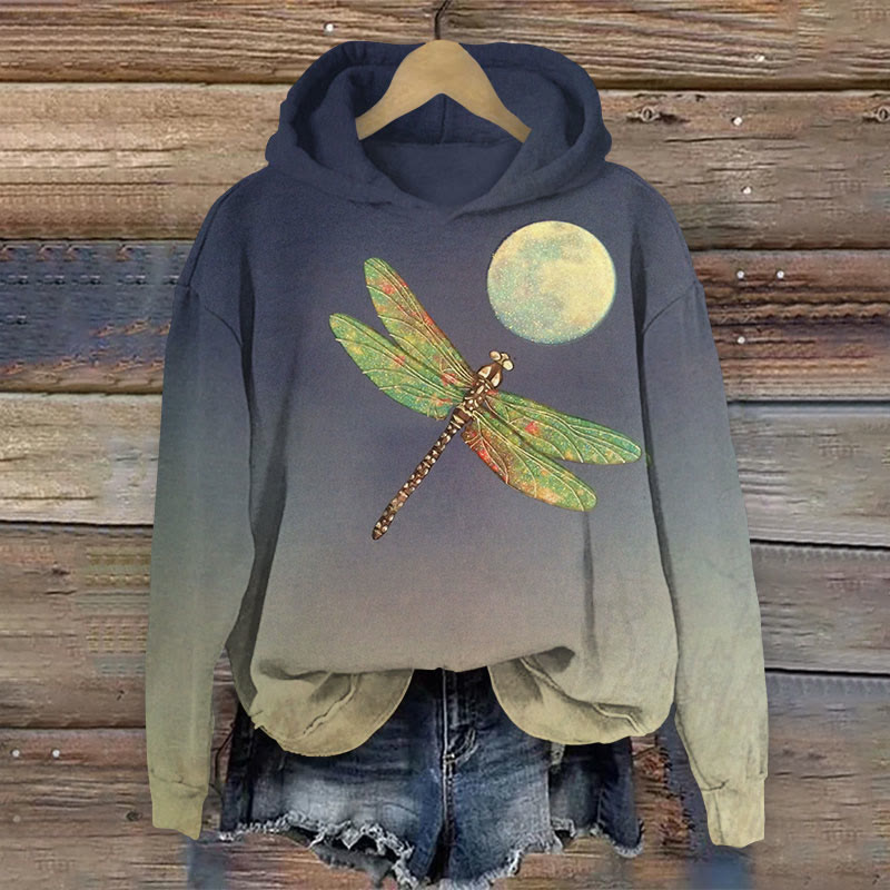 Dashingsoul Vintage Midnight Dragonfly Print Casual Long Sleeve Hoodie