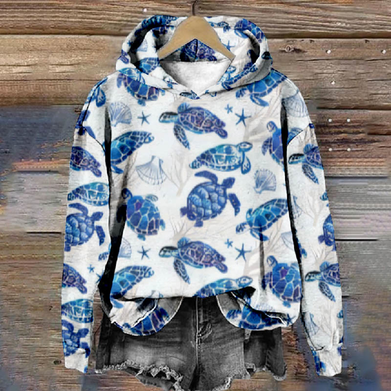 Dashingsoul Sea Turtle Print Casual Long Sleeve Hoodie