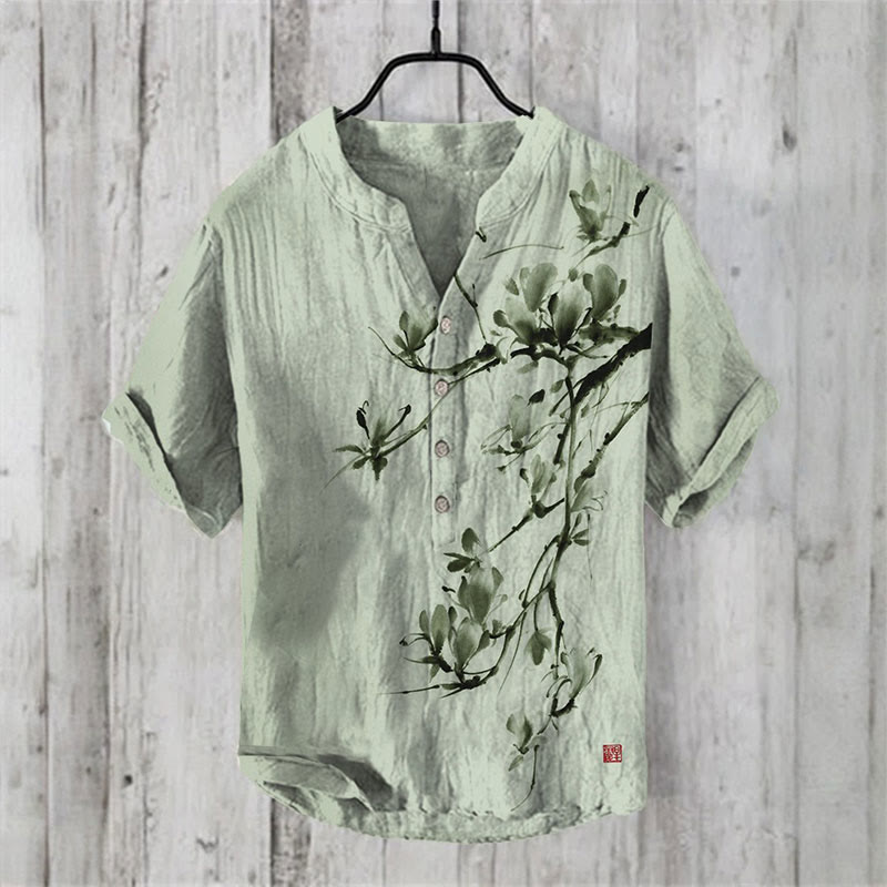 Dashingsoul Vintage Japanese Magnolia Flower Print Casual Shirt