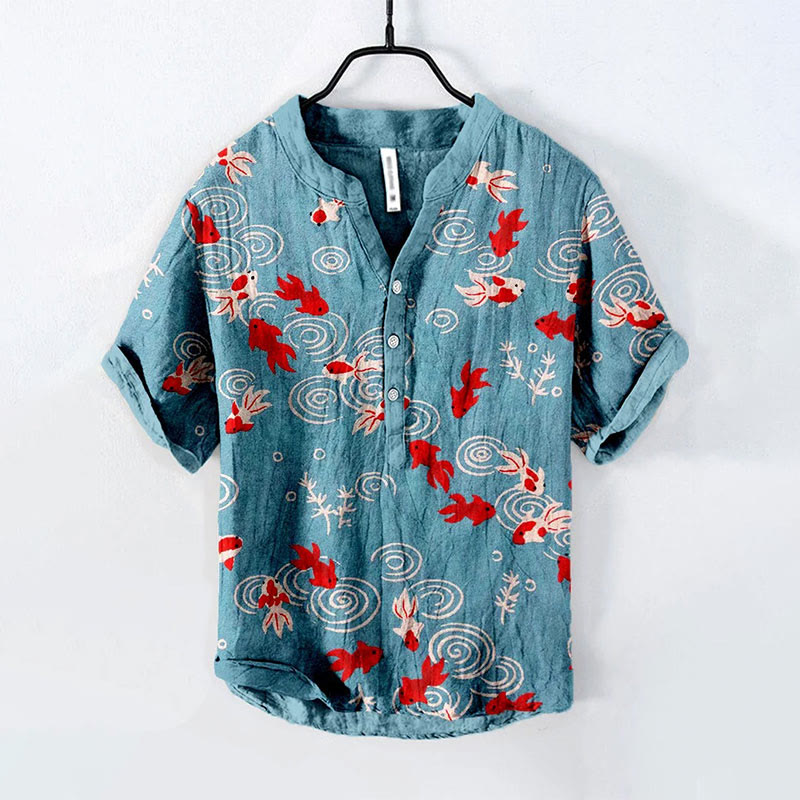 Dashingsoul Japanese Gold Fish Art Print Casual Shirt
