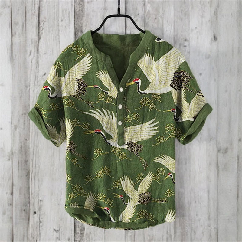 Dashingsoul Japanese Crane Art Print Casual Shirt