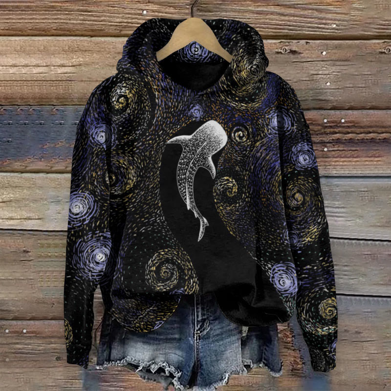 Dashingsoul Whale Shark Seaweed Print Casual Long Sleeve Hoodie