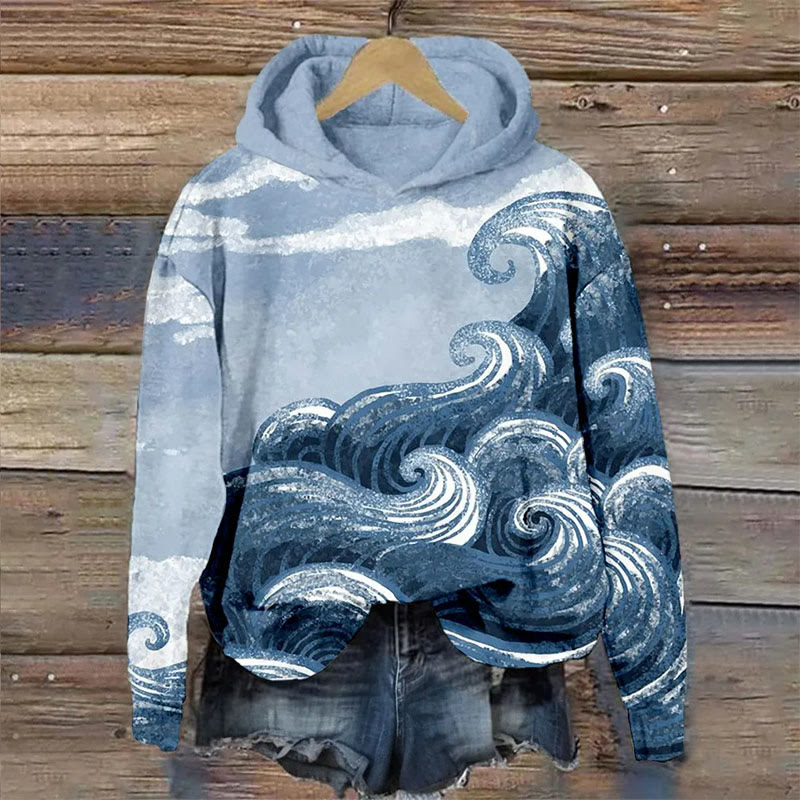 Dashingsoul Ocean Waves Art Print Casual Long Sleeve Hoodie