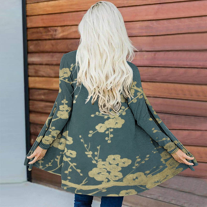 Dashingsoul Women's Japanese Art Plum Blossom Print Long Sleeve Cardigan