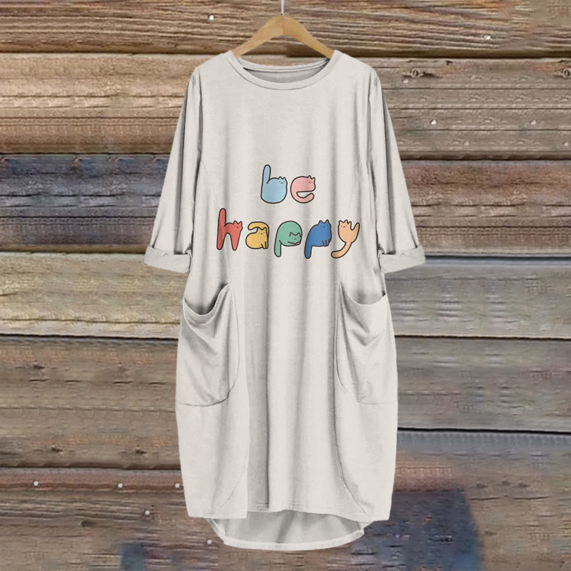 Dashingsoul Creative Happy Cat Print Crew Neck Casual Dress