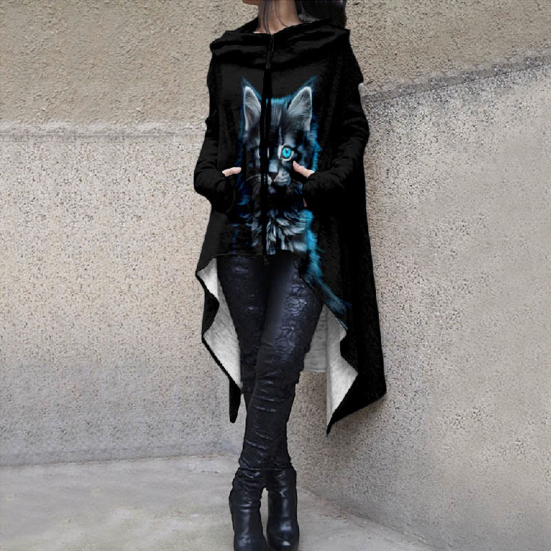 Dashingsoul Women's Secret Forest Long Tail Cat Art Print Casual Hoodie