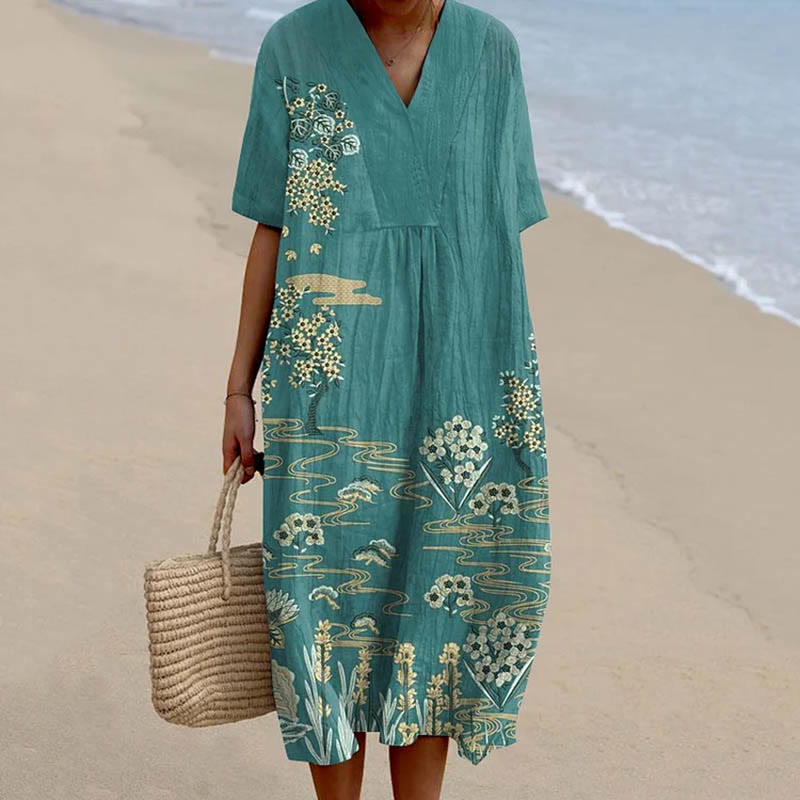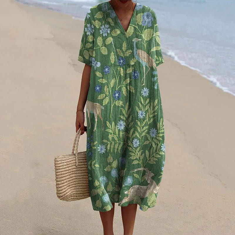 Dashingsoul Women's Summer Forest Flowers And Deer Art Print Flowy Dress