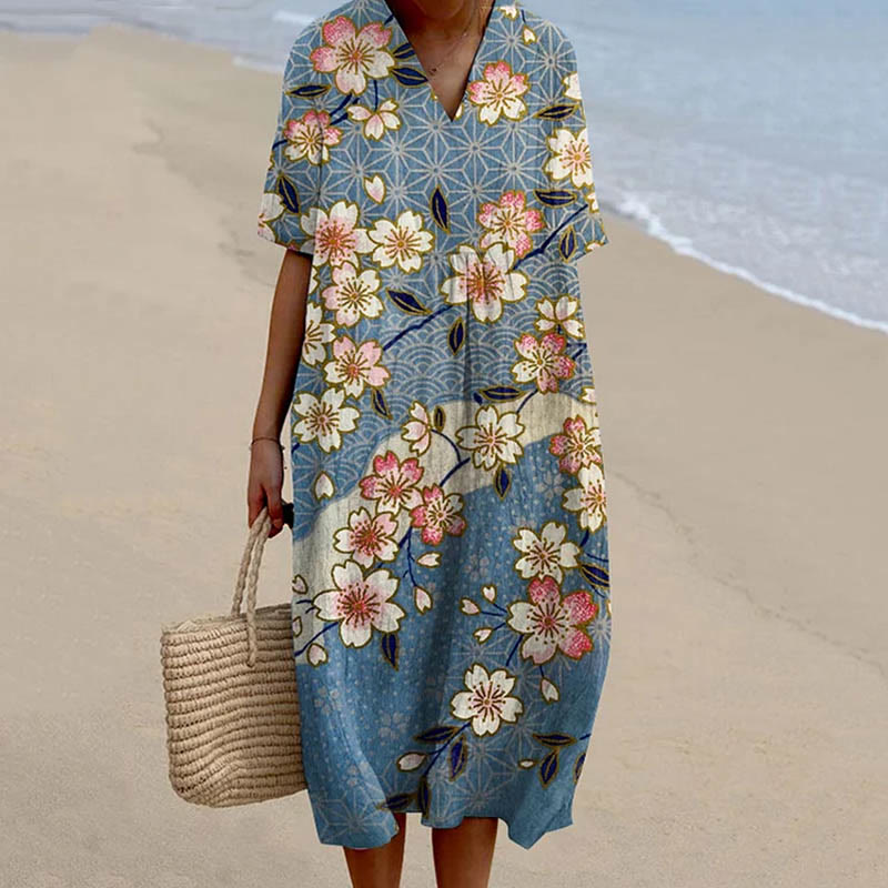 Women's Japanese Lovely Vivid Sakura Art Print Flowy Dress