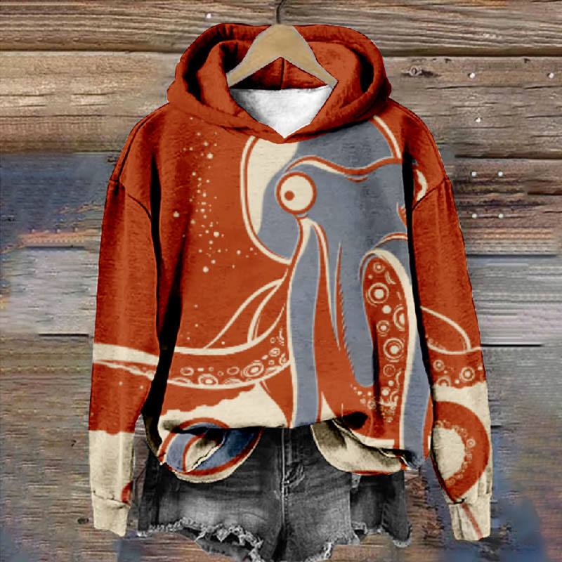 Dashingsoul Women's Funny Abstract Octopus Print Casual Long Sleeve Hoodie