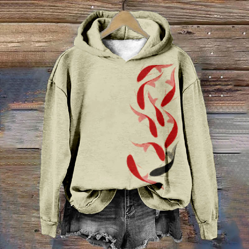 Dashingsoul Women's Vintage Watercolor Goldfish Print Casual Long Sleeve Hoodie